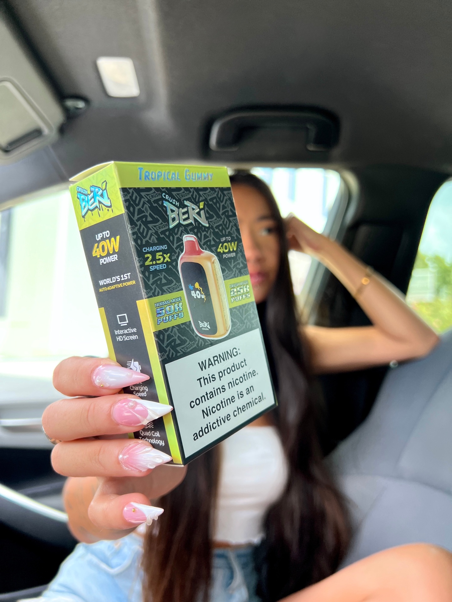 Product DescriptionMeet the Beri Crush – a powerful and intuitive device built for serious performance. Dial in your experience with adjustable wattage from 15w to 25w, or let Auto-Adaptive Mode do the work for you. The harder you draw, the more power it delivers, with a max output of 40W. A digital display with battery and e-liquid indicators keep you in control, while the Quad Mesh Coil delivers bold, consistent flavor for up to 50,000 puffs. |
